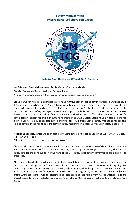 background information on speakers at SM ICG meeting in the Hague, April 2013.