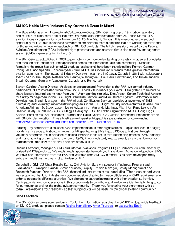 SM ICG Industry Day 15 Nov 2016 - Industry Day article
