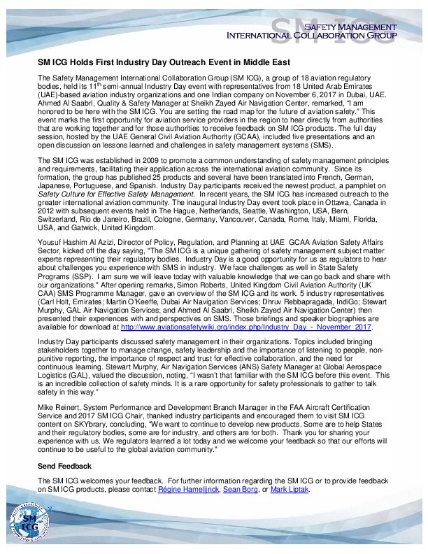 SM ICG Industry Day 6 November 2017 - Industry Day Article