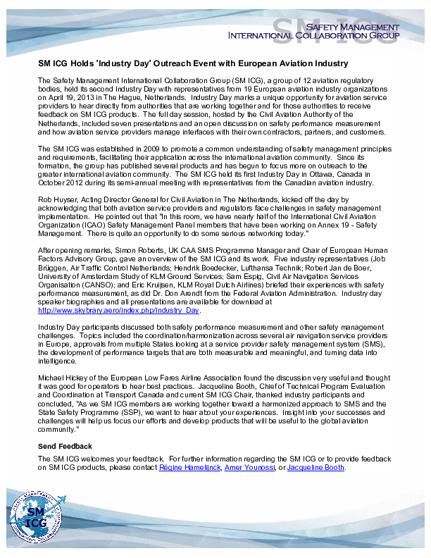 summary of discussions at SM ICG event held at the Hague, April 2013