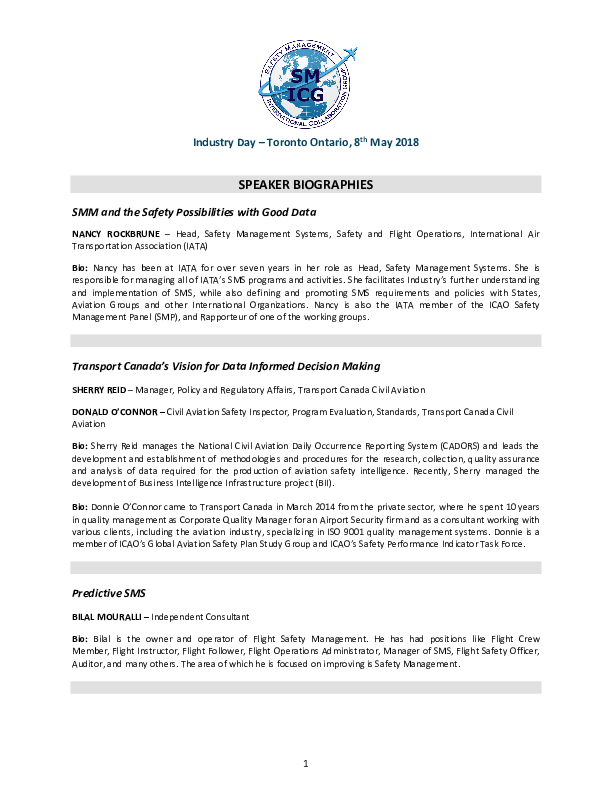 SM ICG Industry Day May 2018 - Speaker Biographies