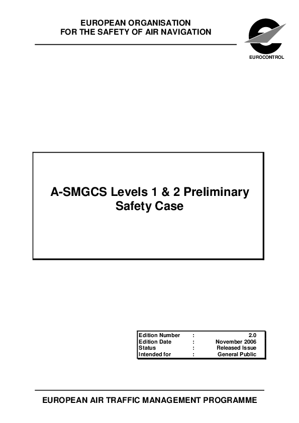 This document presents the preliminary safety case for the A-SMGCS Level 1 and 2 concept.