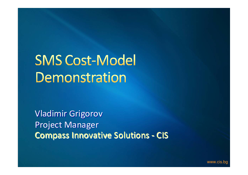 The current presentation introduces the SMS cost model principles, the procedure implementation, operation and the human effort per implementation and for operation.