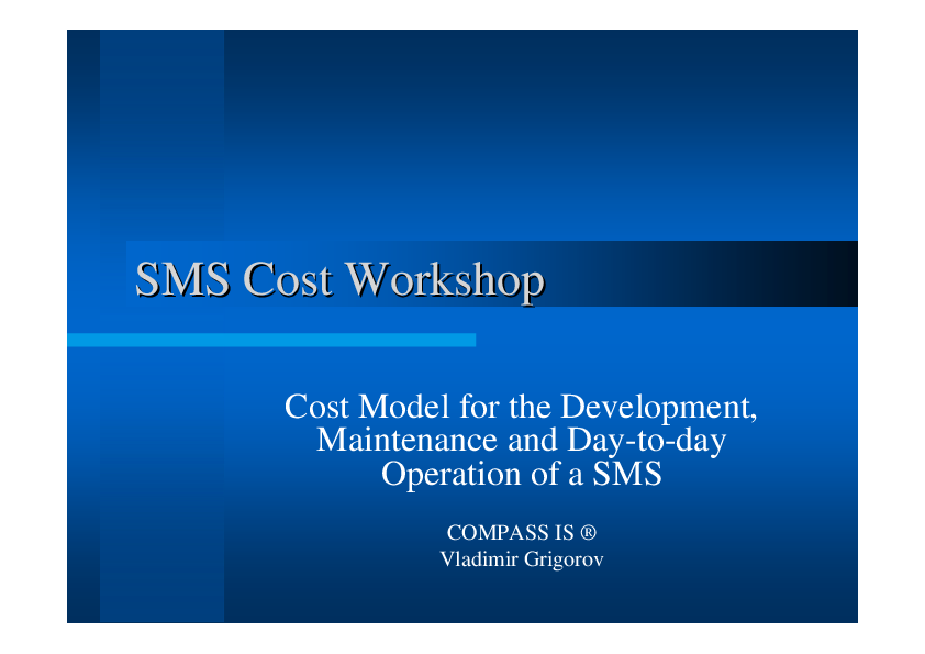SMS Cost Workshop: Cost Model for the Development and D2D Operation of SMS - Part II