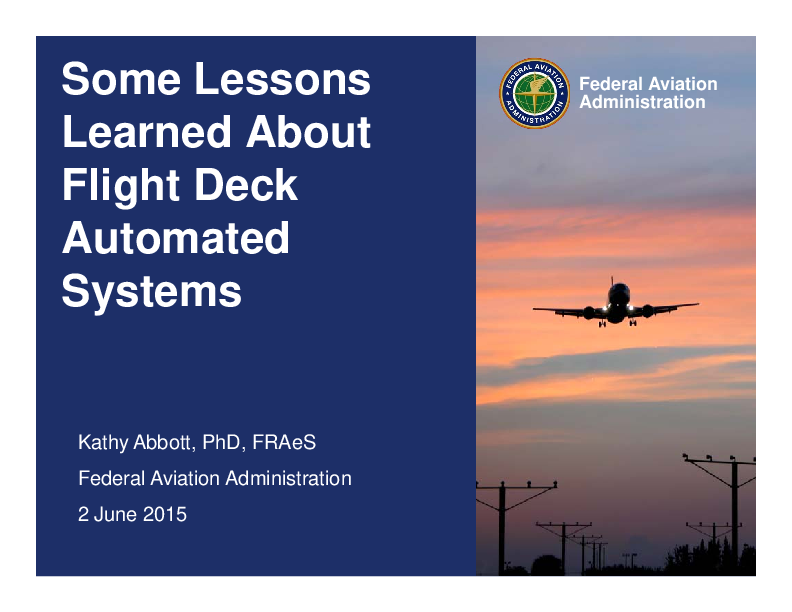 Some lessons learned about flight deck automated systems (automation and safety forum)