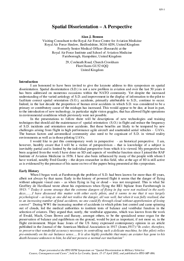 Spatial Disorientation - A Perspective