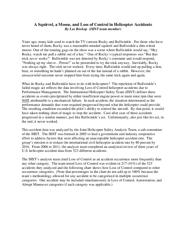 A Squirrel, a Moose, and Loss of Control in Helicopter Accidents