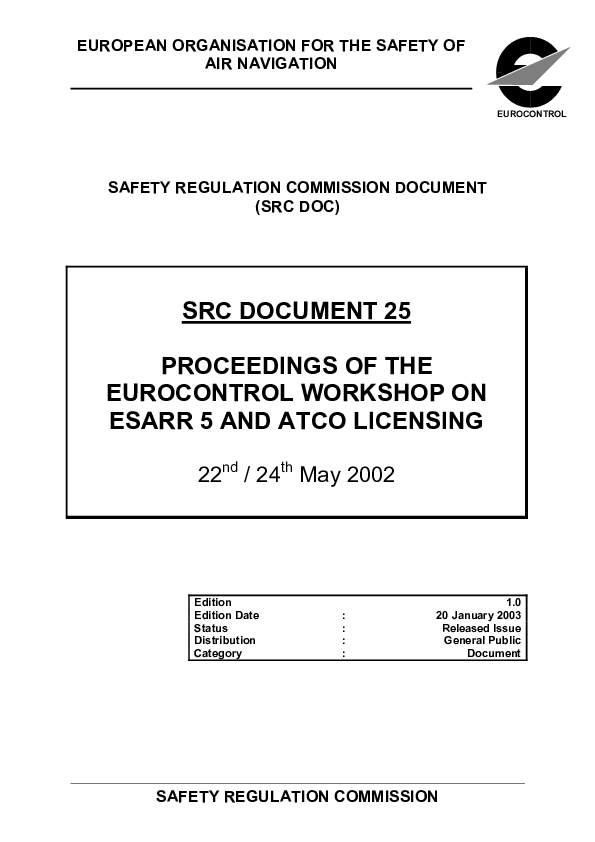 SRC DOC 25- Proceedings Of EUROCONTROL Workshop On ESARR 5 And ATCO Lincensing