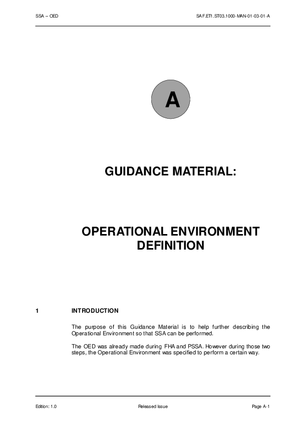 SSA V1-0 Chapter 1 GUIDANCE A – Operational Environment Definition