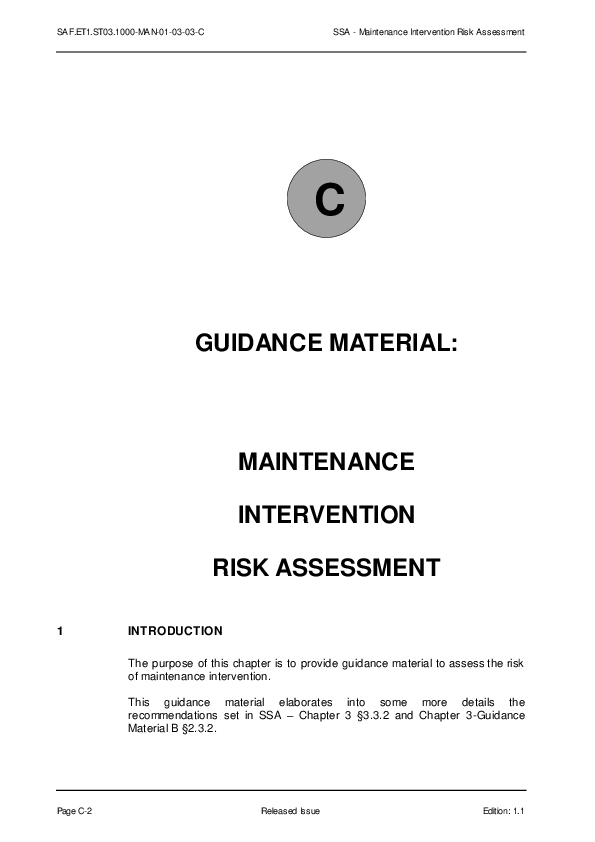 SSA V1-1 Chapter 3 GUIDANCE C – Maintenance intervention risk assessment