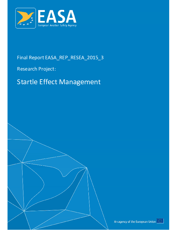 Startle and surprise effects can influence pilot performance in many detrimental ways: from mere distraction to inappropriate actions or hasty decision making. Well-learned procedures and skills can be discarded and substituted by inappropriate reactions, including freezing or over-reacting at the controls. The research focused on startle and surprise reactions that are large enough to impact performance and endanger safety. Startle and surprise played a substantial role in a significant number of Loss?of?Control In?flight events (LOC-I) as well as in other types of accidents. The research aimed to produce a set of comprehensive and practical guidance materials in order to support the development of training programmes for Commercial-Air-Transport (CAT) pilots, to establish a quantitative framework to measure the impact of such reaction and the recovery process during training sessions (e.g. reaction time, recovery of situational awareness) as well as to measure the effectiveness of the proposed training scheme.