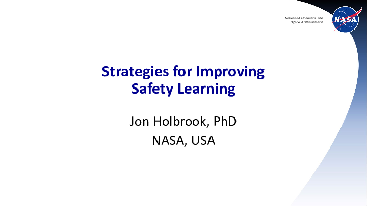Strategies for improving safety learning, Dr. Jon Holbrook, NASA