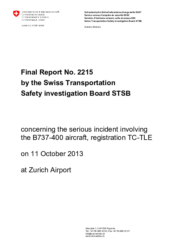 STSB Accident Report 2215, B737 at Zurich airport 11/10/2013
