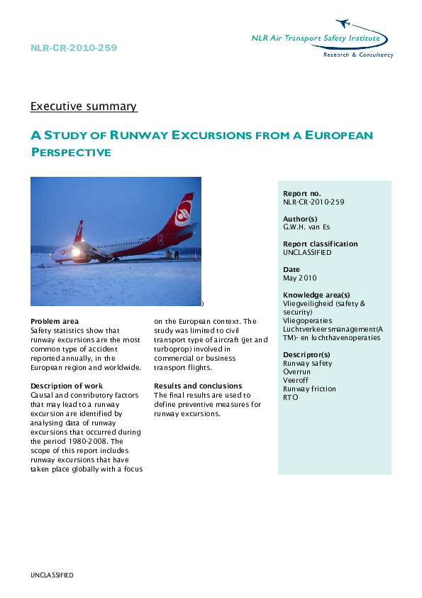 May 2010 study by Gerard van Es which informed the European Action Plan for the Prevention of Runway Excursions.