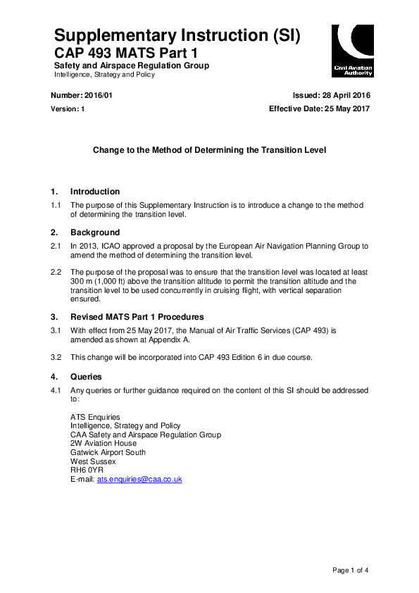 Supplementary Instruction (SI) to CAP 493 (MATS Part 1), 2016/01
