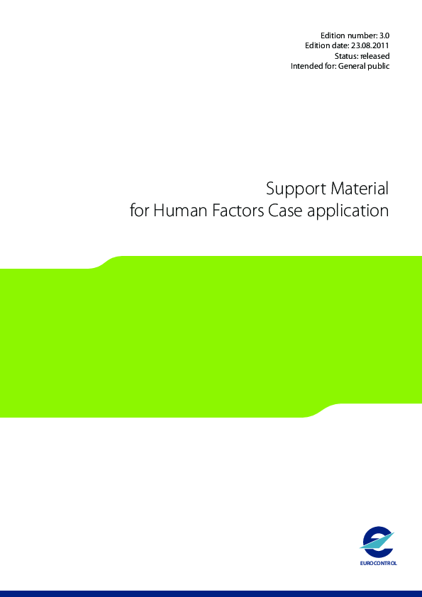 The HF Case is a process to systematically identify and treat HF issues and benefits during an ATM project throughout its lifecycle, from concept to decommissioning. The HF Case process is designed to be iterative and elements of it can be reapplied through each lifecycle phase as the project matures. It provides a comprehensive and integrated approach to ensure that the system can deliver the desired performance improvements and that the human performance contribution to these is optimised. The current HF Case is now in its third edition and has been validated and refined since its launch. This Edition 3 of the HF Case retains its emphasis as a simple, practical and effective approach to the consideration of Human Factors. The HF Case has five specific stages. Stages 1-4 provide the human factors integration process within a project. Stage 5 now provides integrated ongoing monitoring and validation throughout Stages 1-4 and provides a potential link to external processes such a Business, Safety Case or management process.