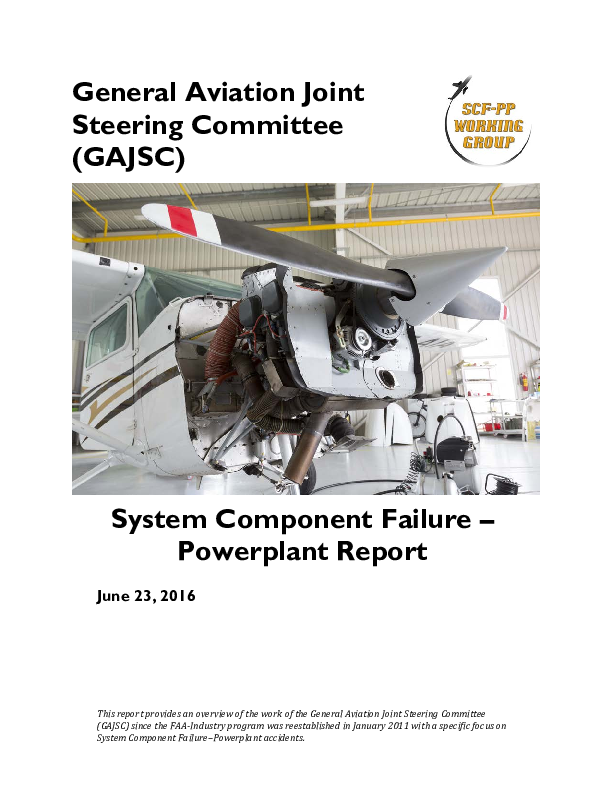 This report provides an overview of the work of the General Aviation Joint Steering Committee (GAJSC) since the FAA-Industry program was reestablished in January 2011 with a specific focus on System Component Failure–Powerplant accidents.