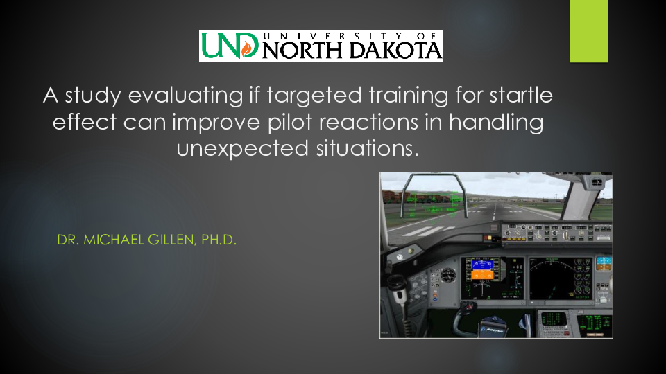 Presentation by Dr Michael Gillen to IASS 2017 in Dublin. Full title: A study evaluating if targeted training for startle effect can improve pilot reactions in handling unexpected situations.