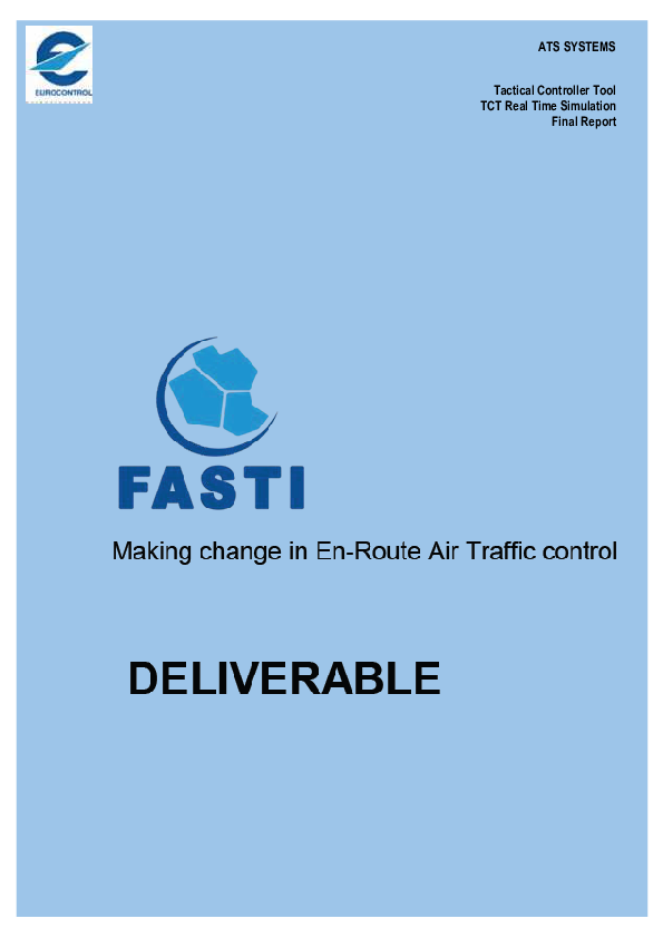 This document reports the findings and output from the Real-Time Simulations (RTS) carried out in the context of the Tactical Controller Tool (TCT) Integration Project launched by the First ATC Support Tools Implementation Programme (FASTI).