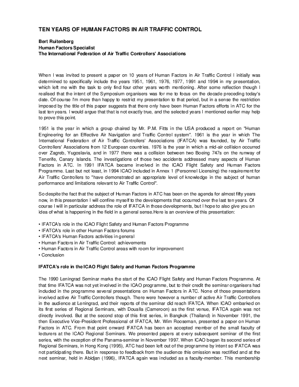 Ten Years of Human Factors in Air Traffic Control