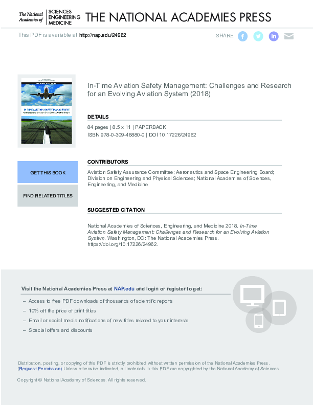 In-Time Aviation Safety Management: Challenges and Research for an Evolving Aviation System, 2018