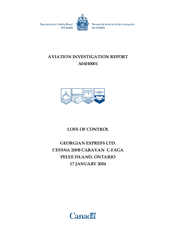 TSB - A04H0001, Loss of control, Georgian Express ltd. Cessna 208