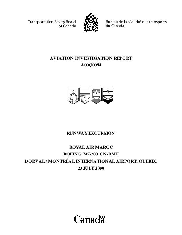 TSB - Aviation Investigation Report A00Q0094, B742 runway excursion, Montreal, 23 July 2000