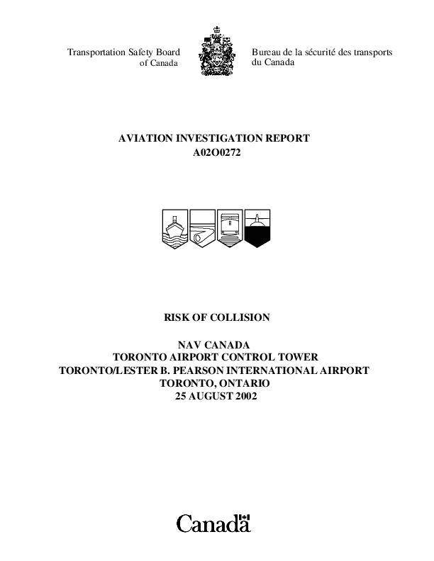 TSB Aviation Investigation Report A02O0272, DC95 and C206, Loss of separation, Toronto Canada, 25 Au