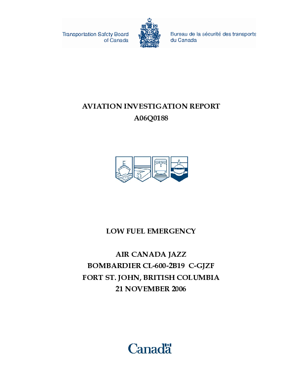 TSB - Aviation Investigation Report A06Q0188 - Low Fuel Emergency (CL60 LOC AW)