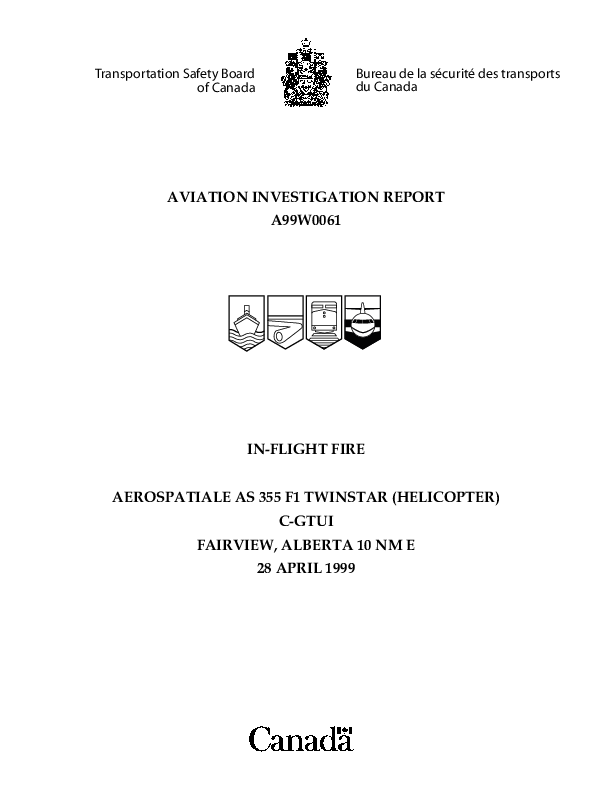 TSB - Aviation Investigation Report A99W0061 (AS335 FIRE)