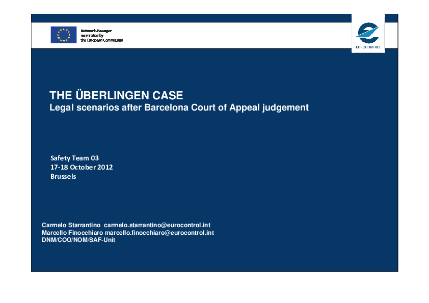 This presentation describes the Uberlingen accident using the perspective of civil judgement of Court of Appeal of Barcelona.