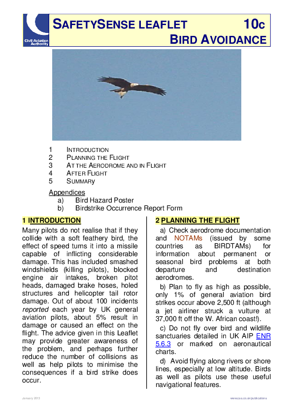 UK CAA SafetySense Leaflet 10c: Bird Avoidance