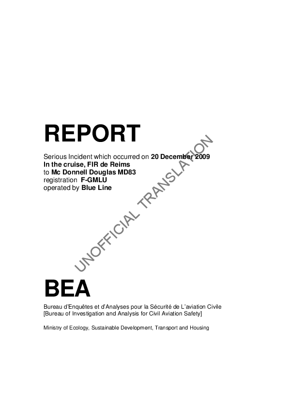 (Unoffical English translation) Serious Incident Report, MD82, stall (in cruise), FIR Reims, France,