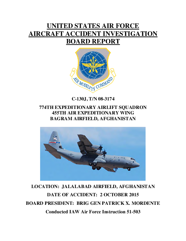 US Air Force Accident Investigation Report C-130J (T/N 08-3174), Afghanistan, 2 Oct 2015