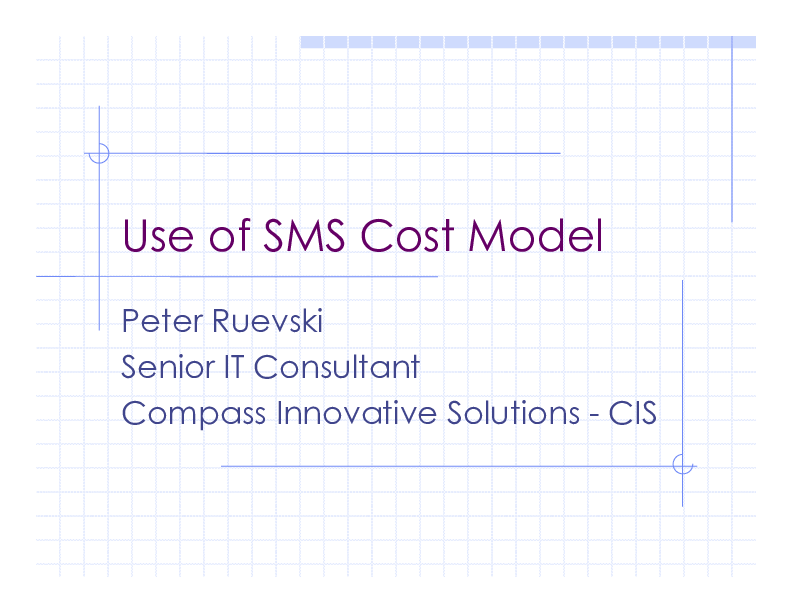 This presentation about SMS cost model aims to offer a holistic approach on the need for SMS cost estimation and analyses all the factors that need to be taken into account for the cost model input and output.