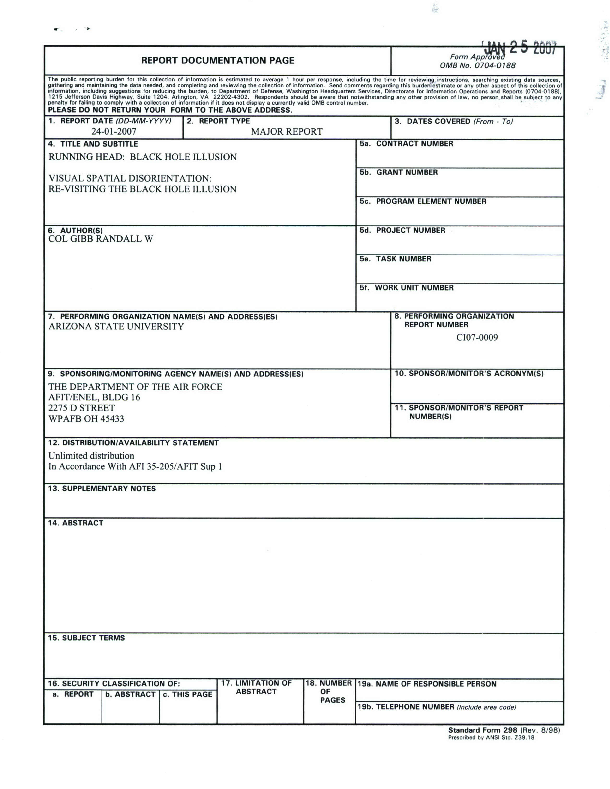 Visual Spatial Disorientation: Re-Visiting the Black Hole Illusion