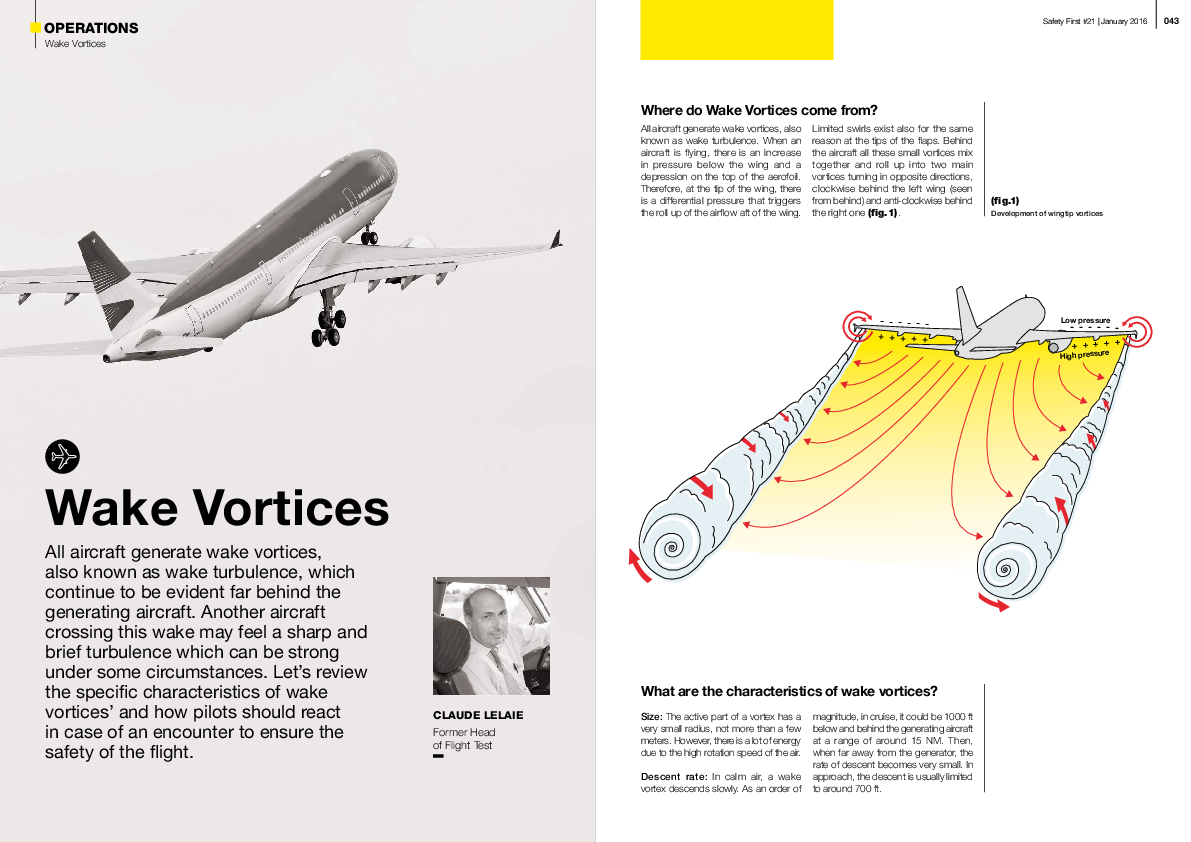 The article reviews the specific characteristics of wake vortices and how pilots should react in case of an encounter to ensure the safety of the flight.