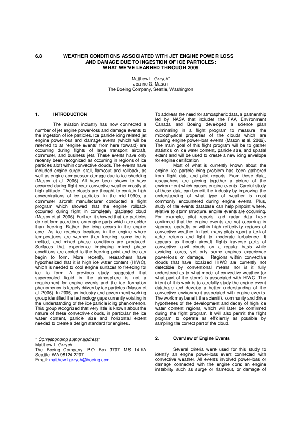 Weather Conditions Associated with Jet Engine Power-loss and Damage Due to ingestion of Ice Particle