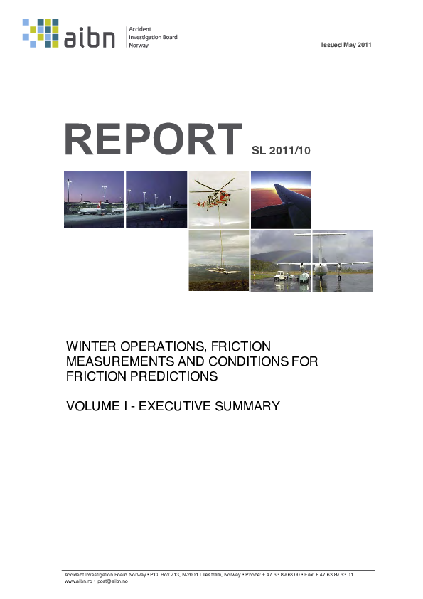 Report by Accident Investigation Board Norway study of 30 events involving surface friction.