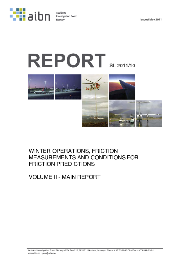 Main body of report by Accident Investigation Board Norway into 30 events involving surface friction as a factor. published in May 2011.
