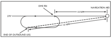 DME holding is subject to the same entry and holding procedures as a standard holding pattern except that distances, in nautical miles (NM), are used in lieu of time values to define the limits of the holding pattern. In describing the direction from the fix on which to hold and the limits of a DME holding pattern, an ATC clearance will specify the DME distance from the navigation aid at which the inbound and outbound legs are to be terminated. The end of each leg is determined by the DME indications. Conversely, when the aircraft is FMS equipped, a pilot might be cleared to hold at a defined waypoint on a specified track with a specific leg distance expressed in NM.