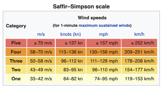 Saffir-Simpson scale. Source: wikipedia