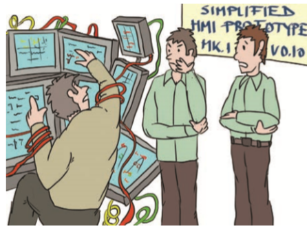 Once there is enough trust in the viability of the overall concept, the specifics have to be fleshed out. When developing a user interface, this would be the time to start using a dedicated rapid prototyping tool. This allows for a more realistic representation and some interactivity while retaining flexibility for rapid changes. Accordingly, cycles can be kept short and there is still enough room to explore different options. However, one should keep in mind that the conditions under which this kind of prototype is evaluated remain idealised and controlled. It might not run on the same hardware at the real workplace (which might not exist yet). This means not all possible side effects and influences can be seen during tests. At best, the influences are known from the context-of-use analysis and their impact can be estimated.